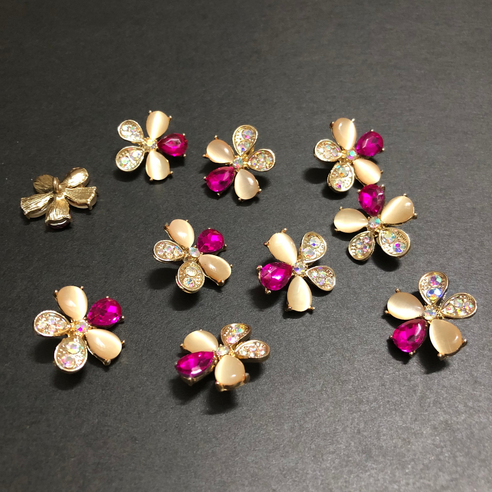 Petal Whirls Multi-Colour Crystals with Beige Marbles and Shocking Pink Stone Golden Buttons