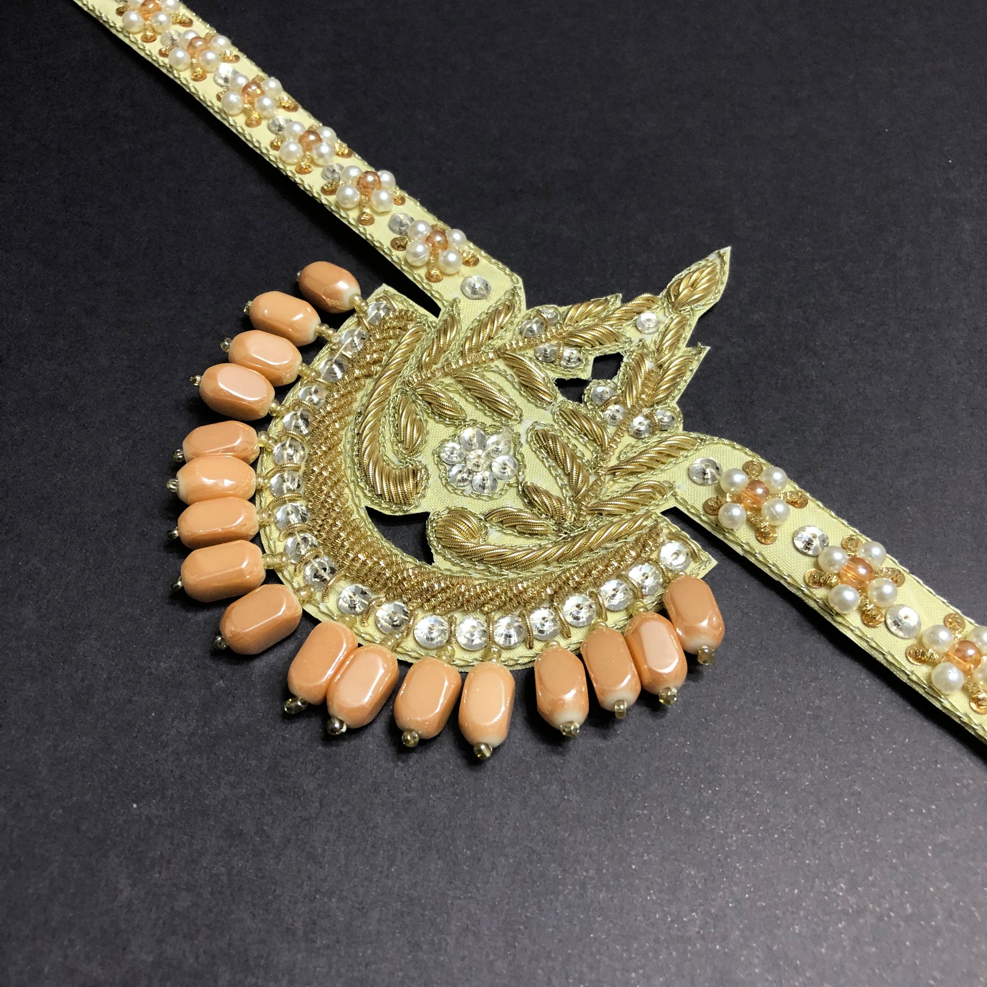 This peachy beads and off-white pearls handmade backstripe is perfect to make your clothing ideas look more elegant.