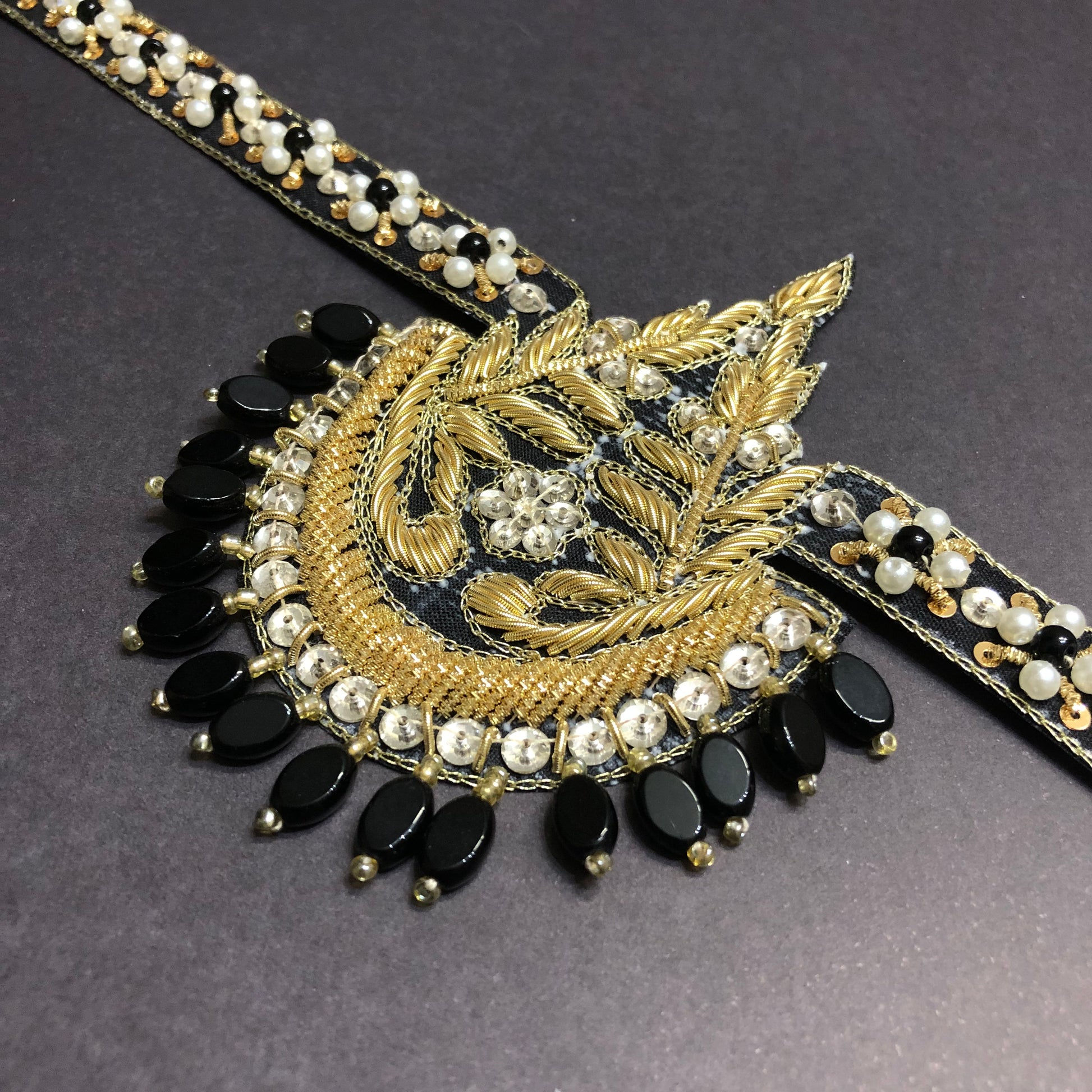 This blacktone black beads and off-white pearls handmade backstripe is perfect to make your clothing ideas look more elegant.