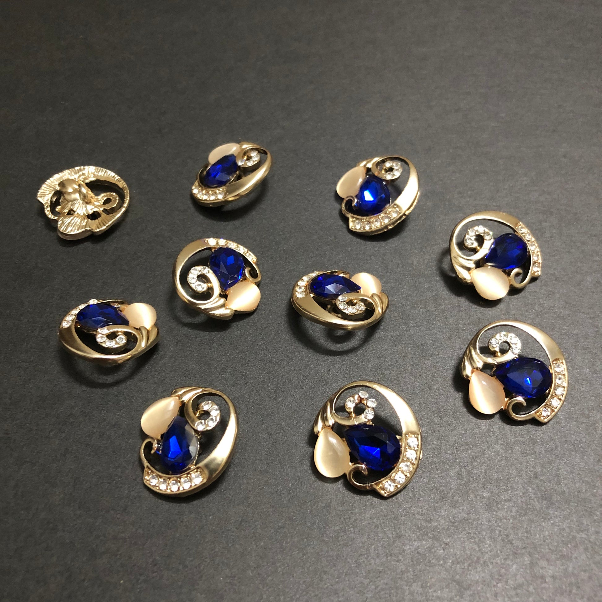 Cyclone Charms Silver Crystals with Beige Marble and Blue Stone Golden Buttons