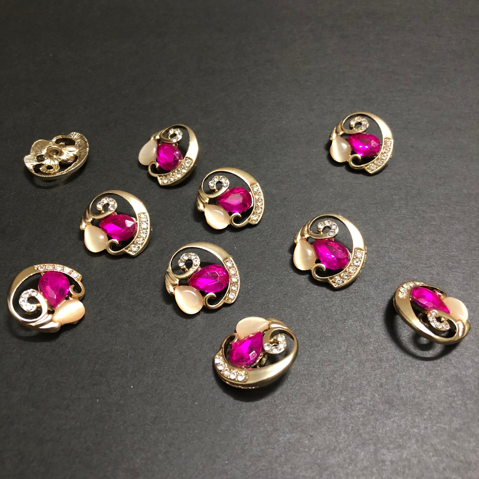 Cyclone Charms Silver Crystals with Beige Marble and Shocking Pink Stone Golden Buttons