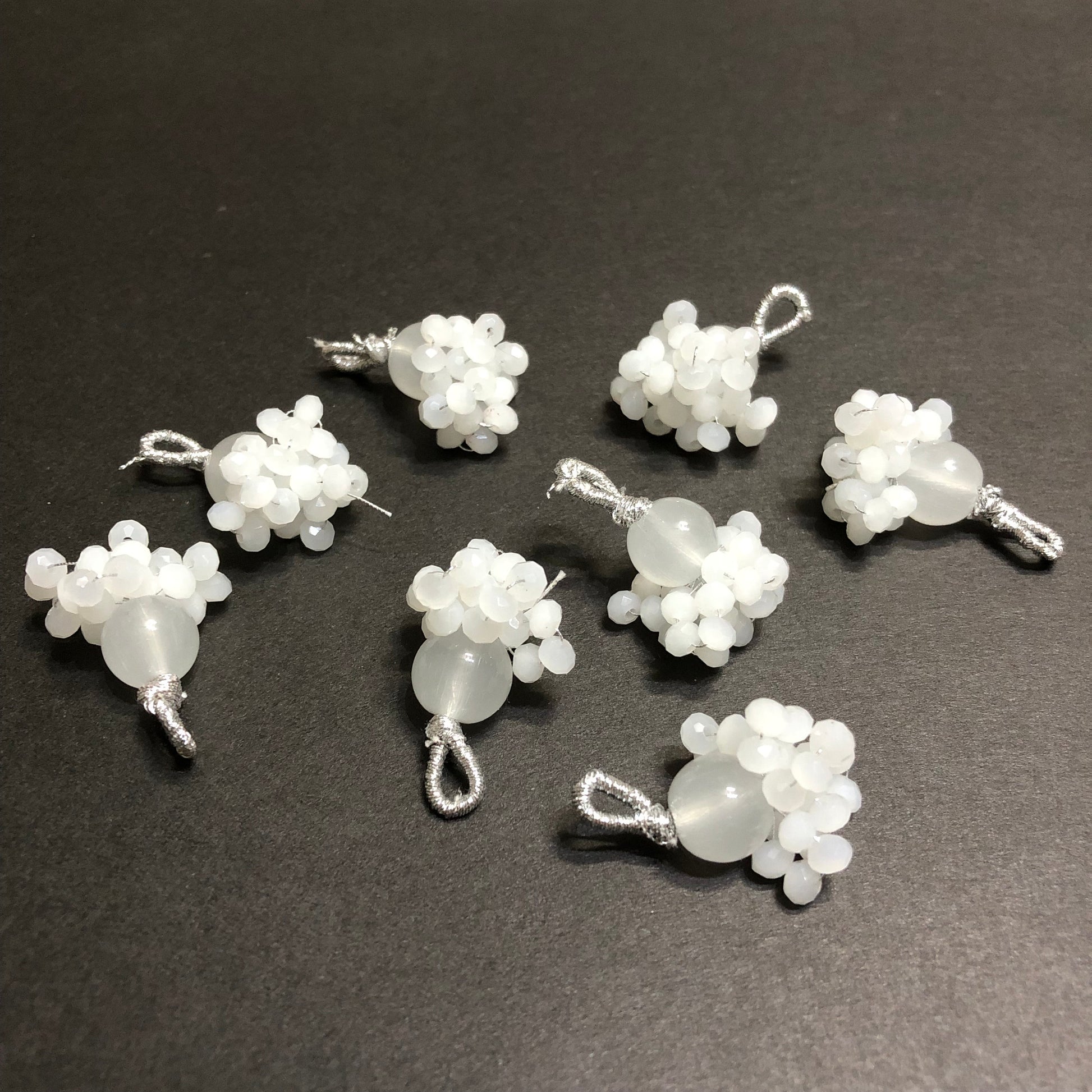 Dangling Greyish White Opaque Crystals Golden Tassel