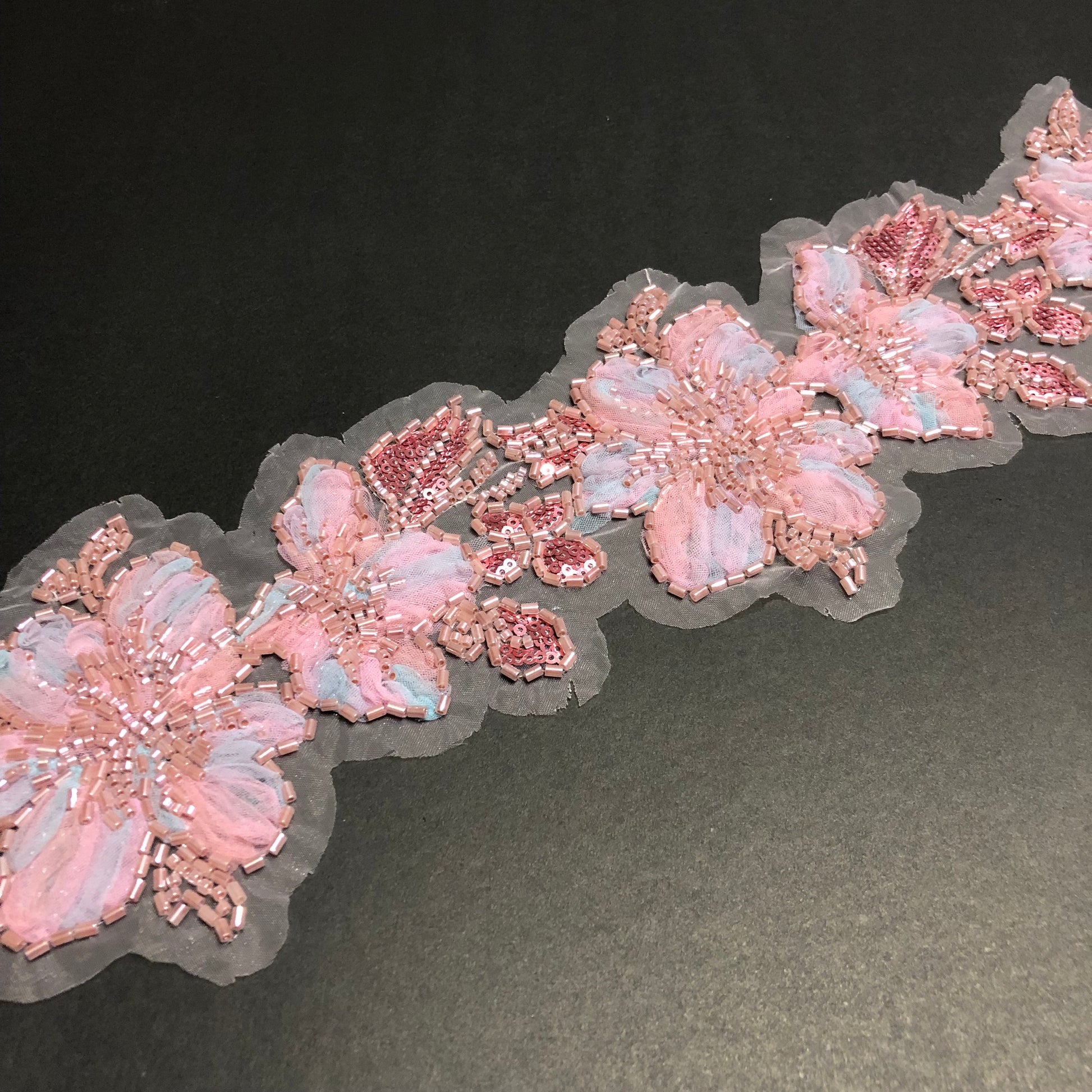 This lace is a luxurious and intricate fabric embellishment technique, perfect for adding dimension and elegance to apparel. This lace combines the delicate craftsmanship of thread work with the sparkle of sequins and the sophisticated charm of beads. The result of this lace is a stunning, textured look that enhances garments with its rich, eye-catching design.