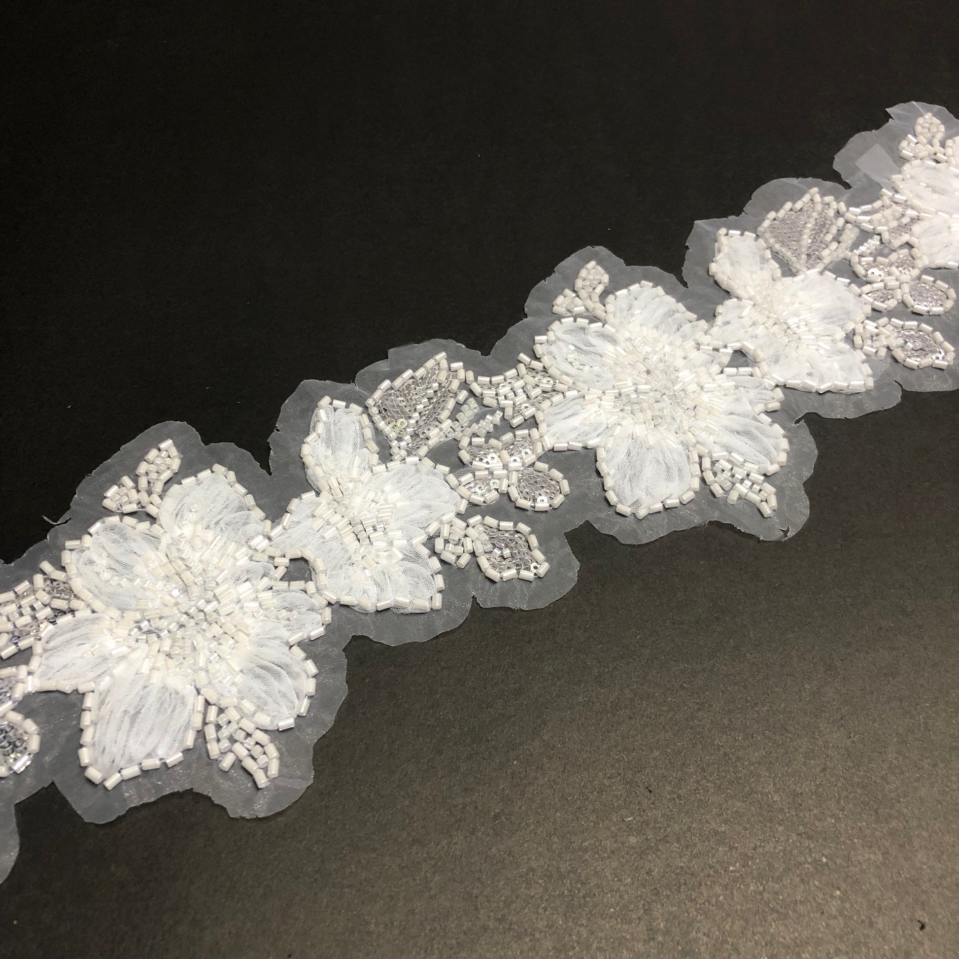 Lace Colour: Silver Sequence, Off-white Cutdana and Net.