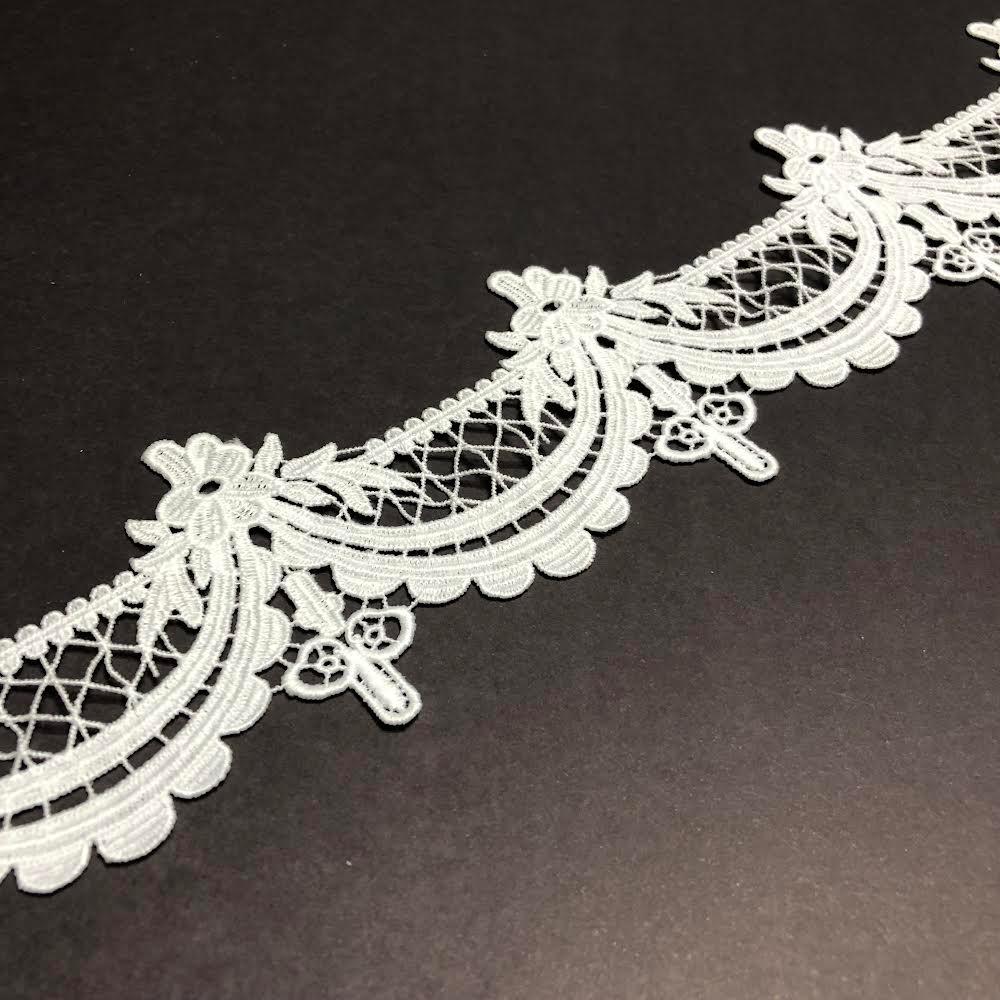 In this lace each thread is meticulously woven to form a mesmerizing lacework that evokes the serene beauty of lunar, with a slight shimmer that catches the light, adding a whisper of enchantment to any garment.