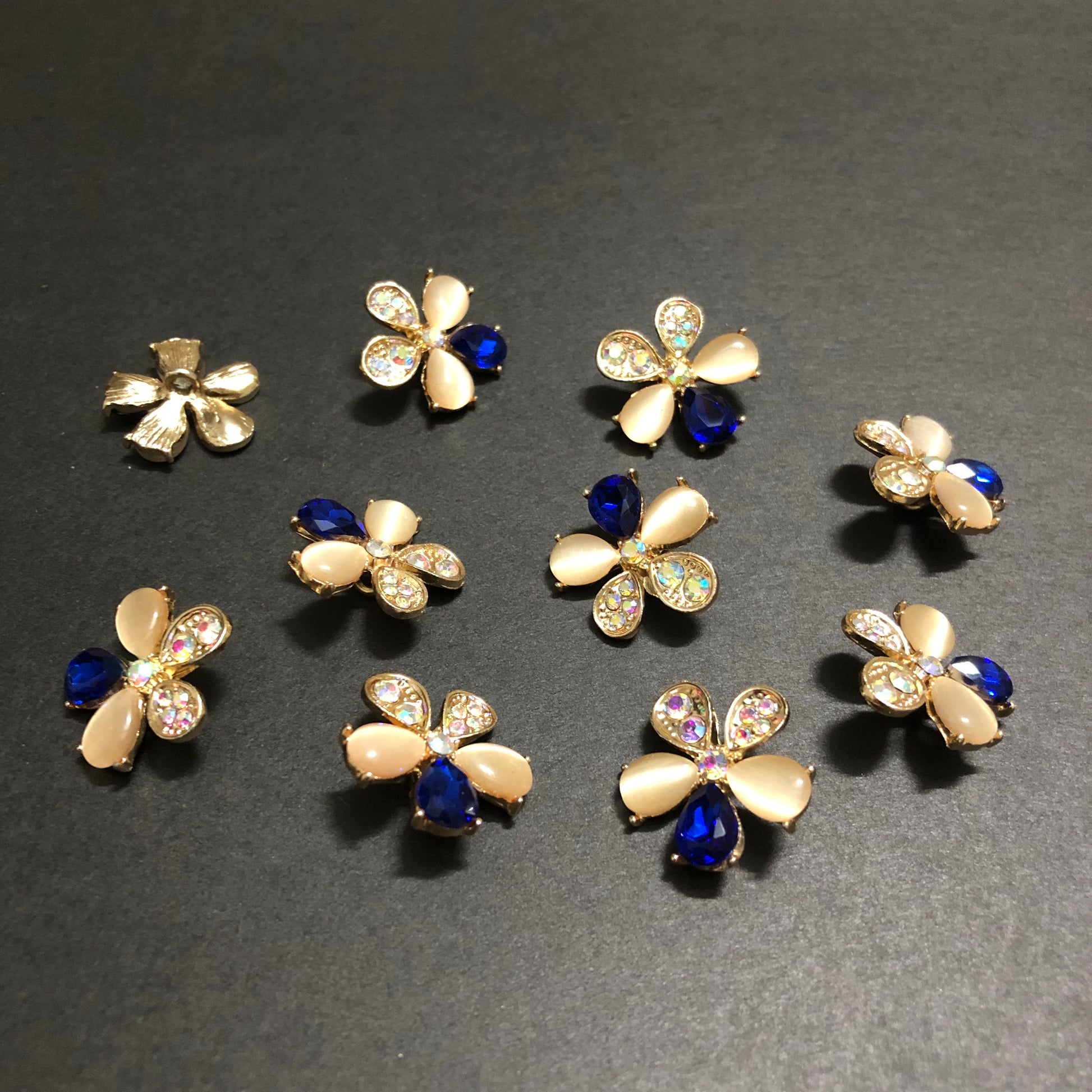 Petal Whirls Multi-Colour Crystals with Beige Marbles and Blue Stone Golden Buttons