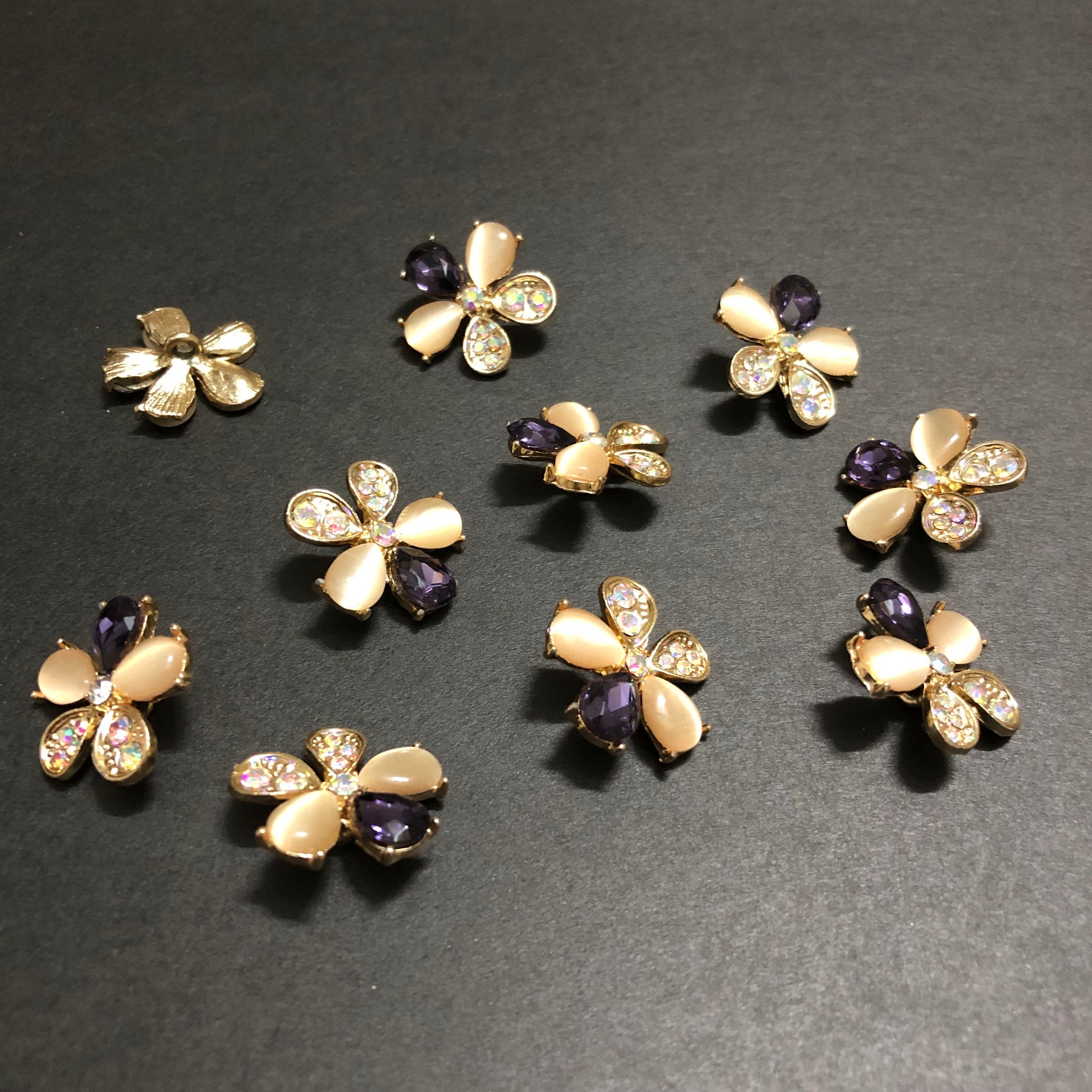 Petal Whirls Multi-Colour Crystals with Beige Marbles and Purple Stone Golden Buttons