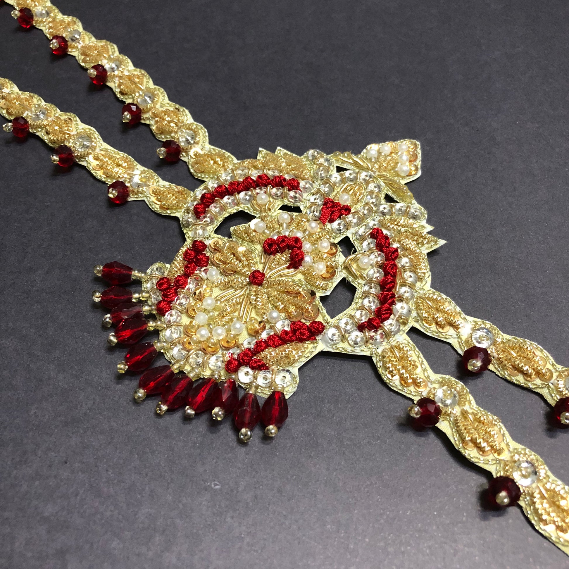 Red Crown with Maroon Beads Motif Golden Backstripe